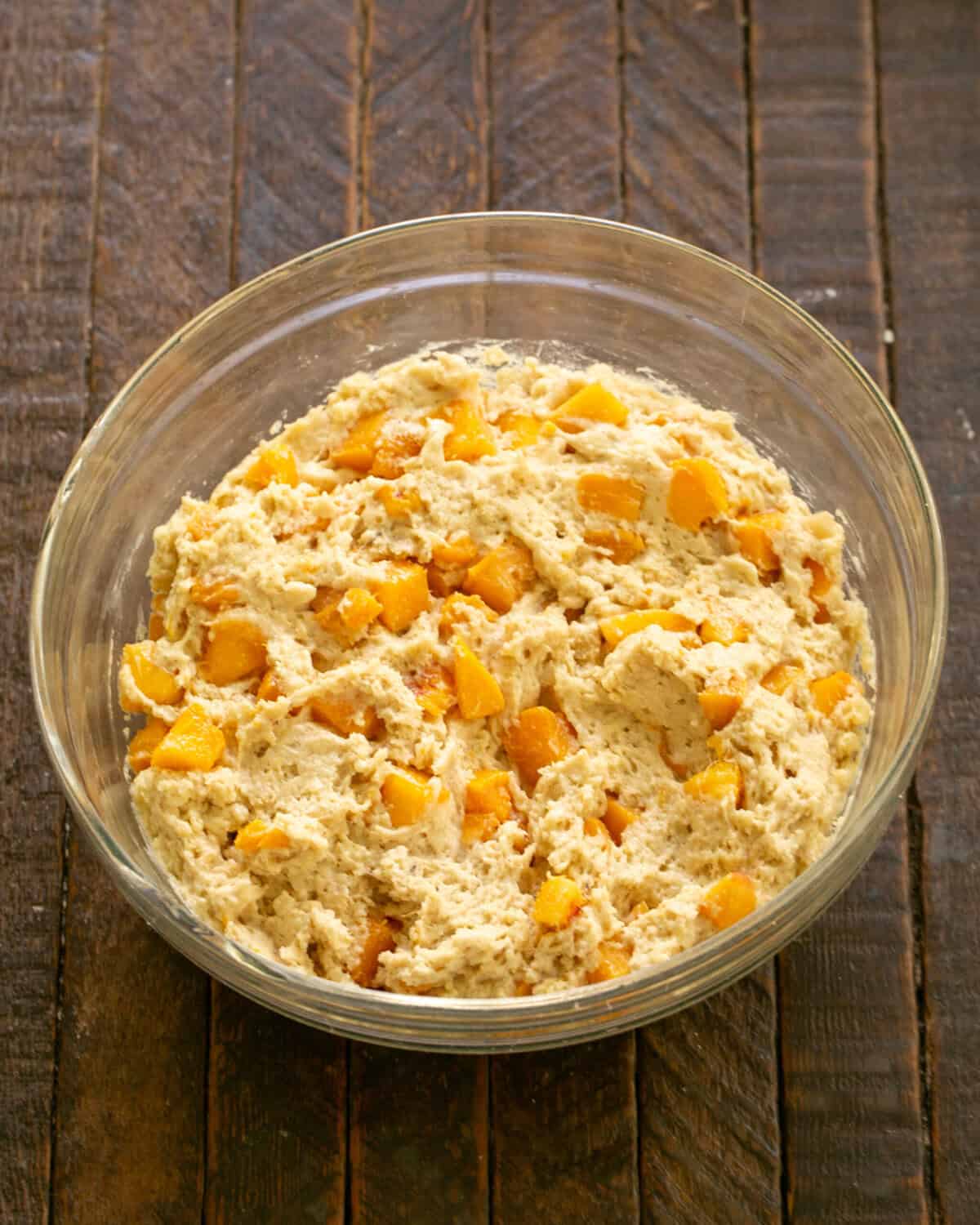 - If your peaches are really ripe and juicy, it’s important to pat the pieces dry so there’s no excess liquid in the batter.
